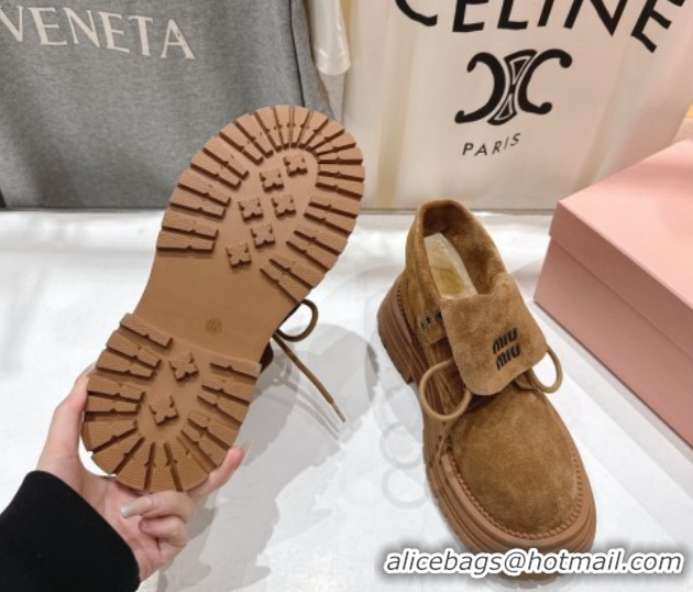 Good Product Miu Miu Suede Laced-up Shoes Brown2 MM120803 1208044