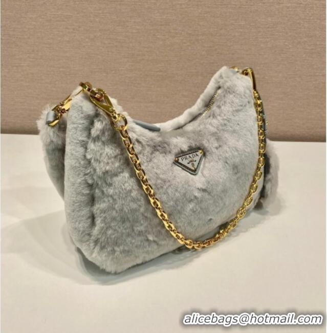 Best Quality Prada Re-Edition mini shearling bag 1BC204 Grey 2026