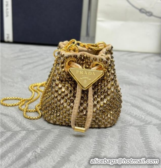 > Prada Handbags > Prada 2026 Bags > Good Product Prada Crystal Embellished Satin Mini Pouch 1NR016 Gold 2026