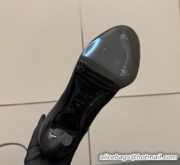 Luxurious Saint Laurent Diane Heel High Boots 10.5cm in Black Calfskin Leather with Logo Strap 1213014