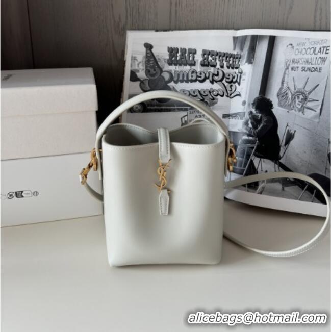 Good Product Saint Laurent LE 37 Mini Bucket Bag in Shiny Calfskin 765870 White 2025 Top Quality