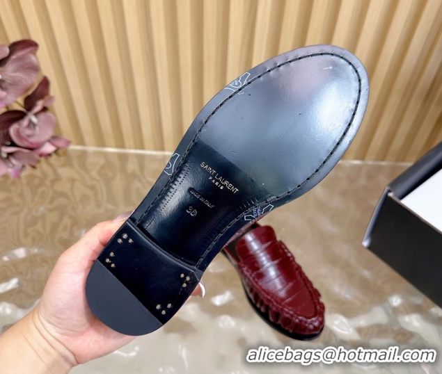 Good Product Saint Laurent Le Loafers Mules in Eel Embossed Leather Burgundy 0825098
