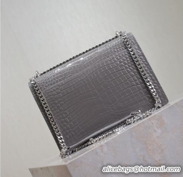 Promotional Saint Laurent Sunset Medium Bag in Crocodile Embossed Leather 442906 Grey 2025