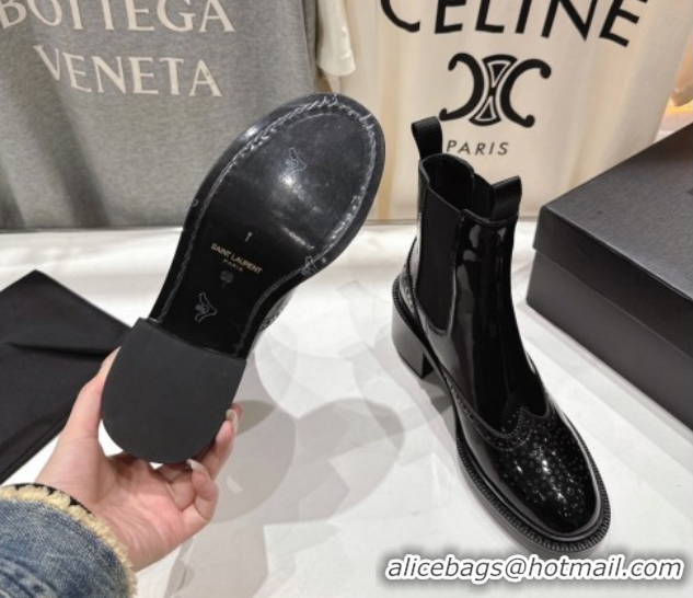 Grade Saint Laurent Vincent Heel Chelsea Booties 6cm in Perforated Patent Leather Black 1213060