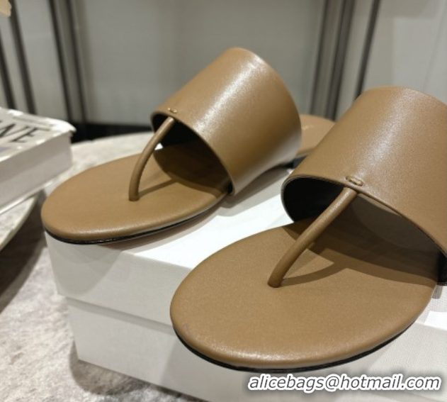 Good Product The Row Signum Flat Thong Slides Sandal in Calfskin TR082704 Khaki 2025