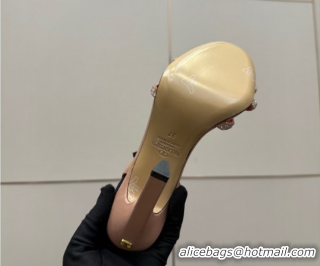 Good Looking Valentino Calfskin Leather Heel Sandals 10.5cm with Strass Nude VLTN121601 1216010