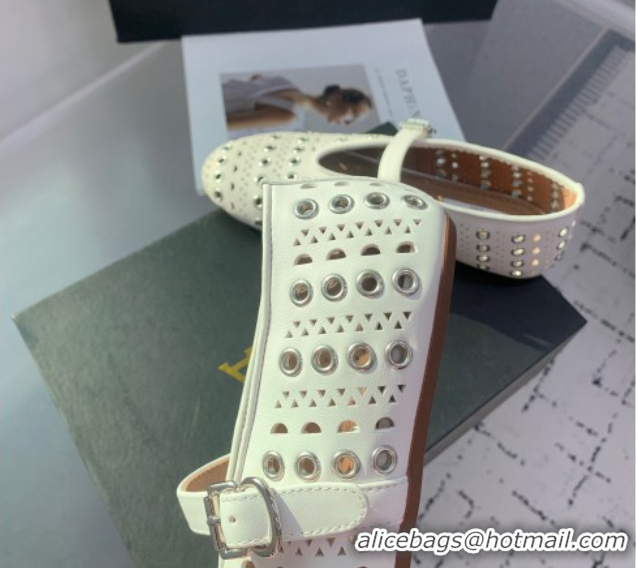 Good Quality Alaia Ballet Flat in Openwork Leather with Eyelet White 1223008