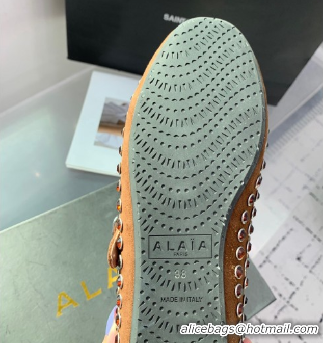 Best Price Alaia Ballet Flat in Suede with Strass Light Brown 1223027