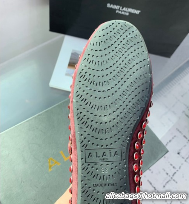 Good Quality Alaia Ballet Flat in Suede with Strass Dark Brown 1223028
