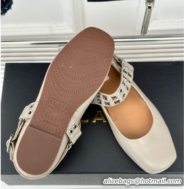 Good Looking Alaia Ballet Flats with Eyelet Studs and Buckle in Calfskin White AL100807 1008037
