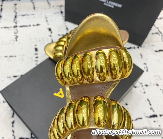 Top Grade Alaia Tribal Leather Heel Slides Sandal 10cm with Metalic Pebbles Gold-Tone 1223054