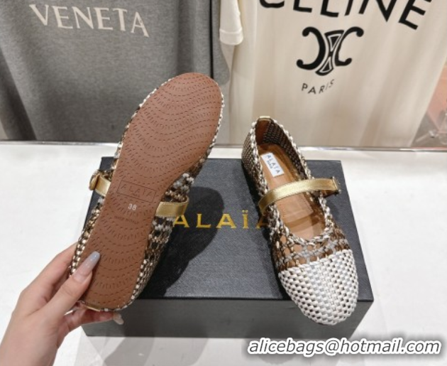 Good Quality Alaia Woven Ballet Flats White/Aged Gold 0827090