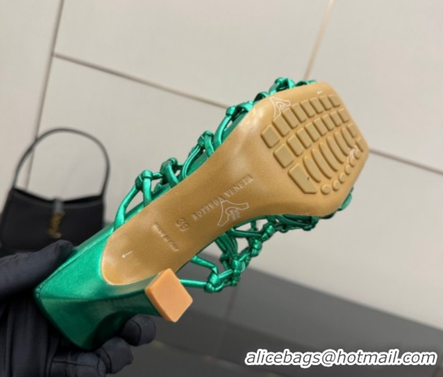 Best Price Bottega Veneta Riva Heel Mules 9cm in Woven Knotted Leather with Frog Charm Green 50823004