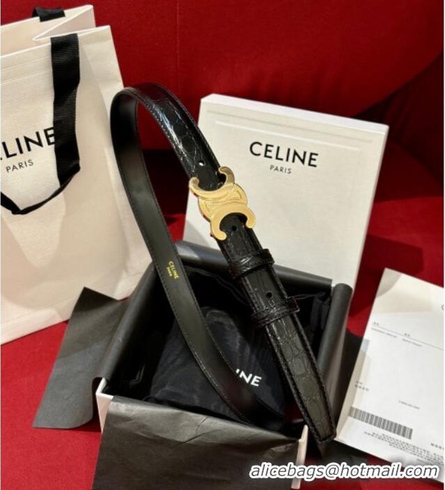 Good Quality Celine Crocodile Embossed Leather Belt 2.5cm with Triomphe Logo Buckle CE011001 Black 2025