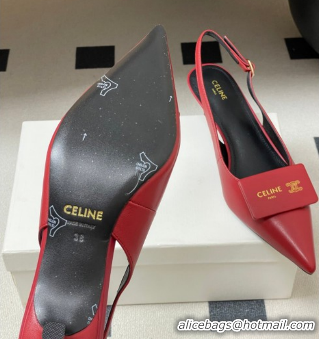 Popular Style Celine Signature Slingbacks Pump 5cm in Lambskin Leather 0227005 Red 2026