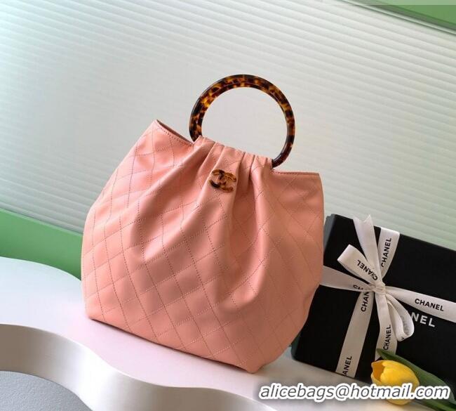 Good Quality Chanel Calfskin Leather & Turtoise-Shell Effect Top Handle Hobo Bag AS6010 Pink 2026
