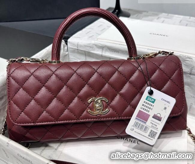 Good Quality Chanel Grained Calfskin Long Maxi Flap Bag with Top Handle AS6091 Burgundy 2026