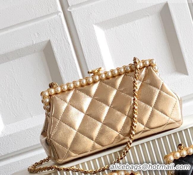 Good Quality Chanel Lambskin Leather & Pearls Clutch with Chain AS5912 Gold 2026