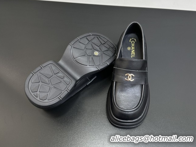 Good Quality Chanel Lambskin Platform Loafers CH91302 Black