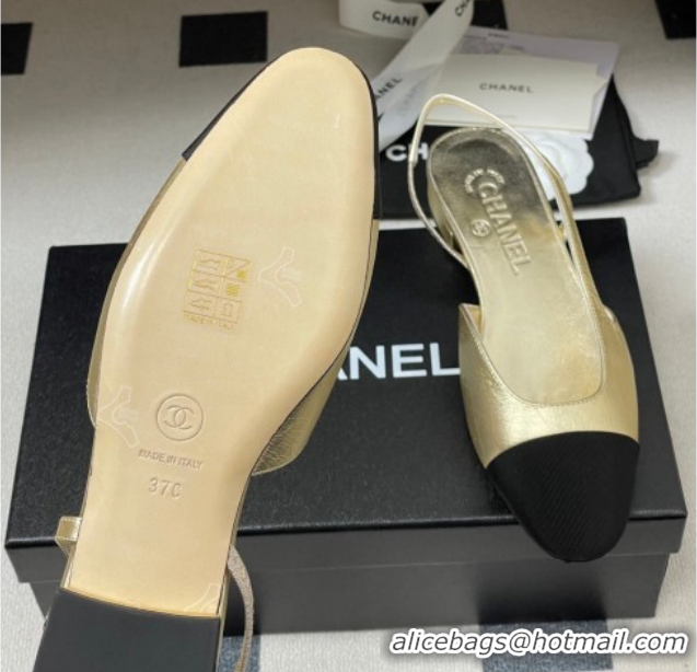 Good Quality Chanel Metallic Leather & Grosgrain Slingbacks Flat G31319 Gold/Black 2026
