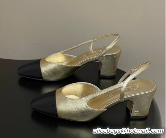 Unique Style Chanel Metallic Leather & Grosgrain Slingbacks Pump 6.5cm G31318 Gold/Black 2026