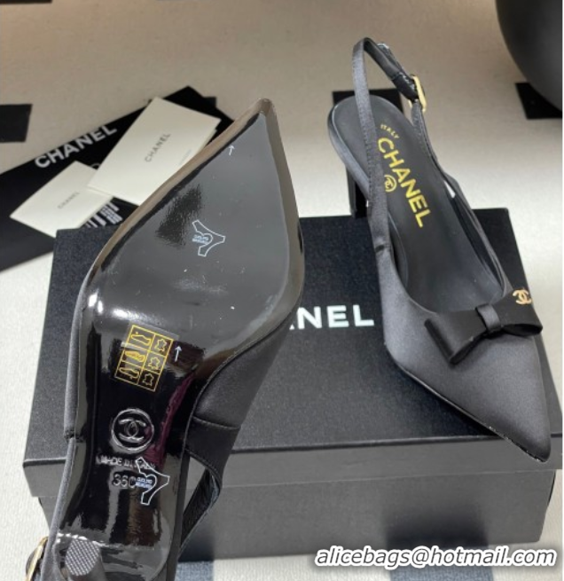Good Quality Chanel Silk Satin Slingbacks Pumps 7.5cm Black G46547