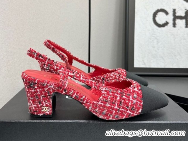 Pretty Style Chanel Tweed & Grosgrain Slingbacks Pump 6.5cm G31318 Red/Black 2026