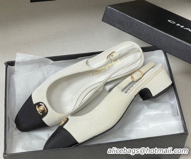 Pretty Style Chanel Tweed & Grosgrain Slingbacks Pumps 3.5cm with CC Tag White 2025 G46441 1103030