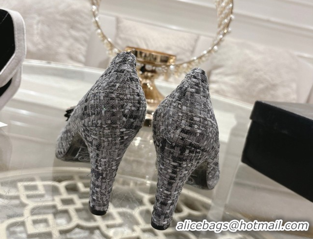 Unique Style Chanel Tweed & Patent Leather Pumps 8.5cm with Camellia Bloom CH030704 Grey 2026