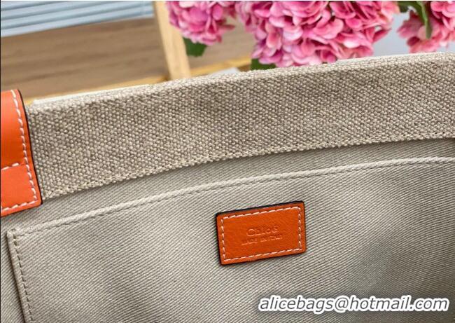 Good Quality Chloe Medium Woody Tote Bag in Linen Canvas and Calfskin Leather 1120 Orange 2025