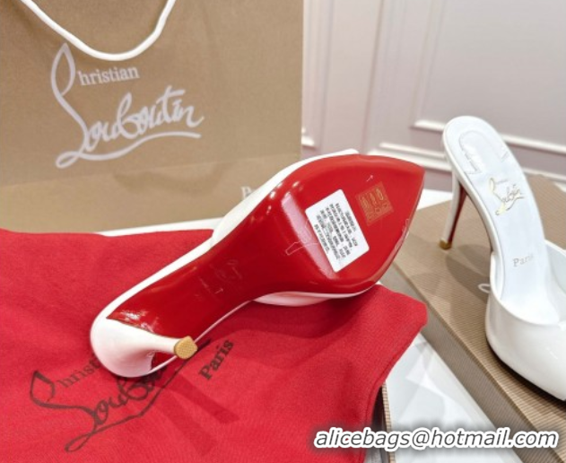 Good Quality Christian Louboutin Miss Z Heel Slides Sandal 10cm in Patent Leather White 1030132