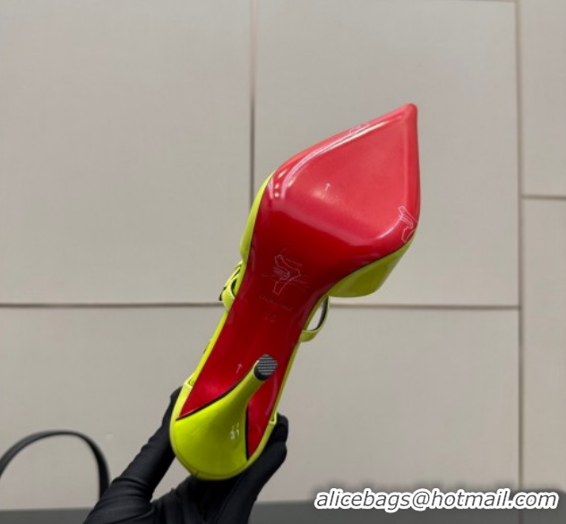 Good Quality Christian Louboutin Patent Leather Pumps with Trible Straps CL120902 Neon Green 2026