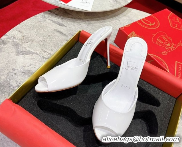 Best Price Christian Louboutin Me Dolly Heel Slides Sandal 10cm in Patent Leather 0225085 White 2026