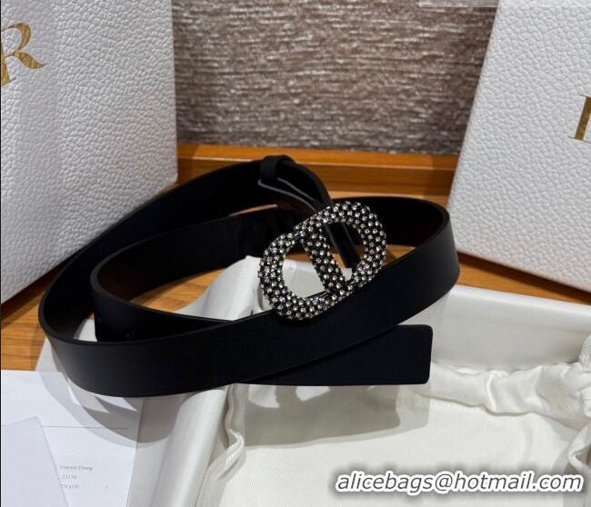 Good Quality Dior Calfskin Leather Belt 2.5cm with Strass CD Buckle 1230 Black 2025