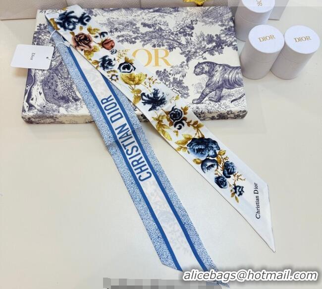 Top Quality Dior D-Millefiori Bandeau Silk Scarf 6x100cm DR010602 Blue 2026