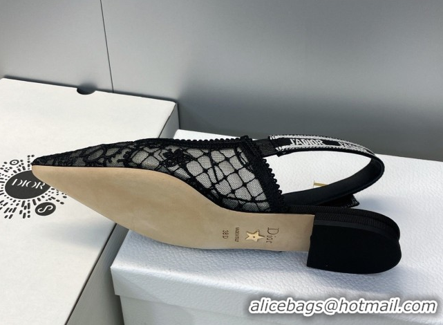 Good Looking Dior J'Adior Slingback Ballets Flat in Transparent Mesh Embroidered with Millefiori Motif Black 2026 0302044