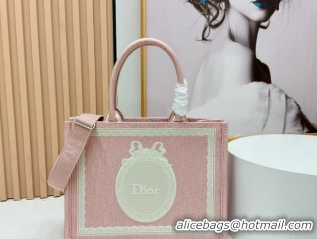 Sophisticated Dior Medium Book Tote Bag in Pink Oblique Embroidery with White Lace and Dior Médaillon 0127068 2026