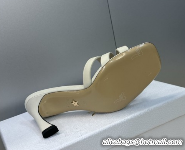 Good Quality Dior Or 30M Heeled Slides Sandal 8cm in Calfskin Leather with CD Pearl White 0302075