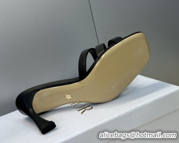 Cheap Price Dior Or 30M Heeled Slides Sandal 8cm in Calfskin Leather with CD Pearl Black 0302076