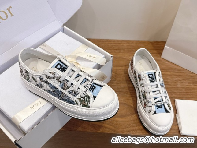 Best Grade Dior Walk'n'Dior Platform Sneakers 4.5cm in Embroidered Cotton White/Blue 2026 0303022