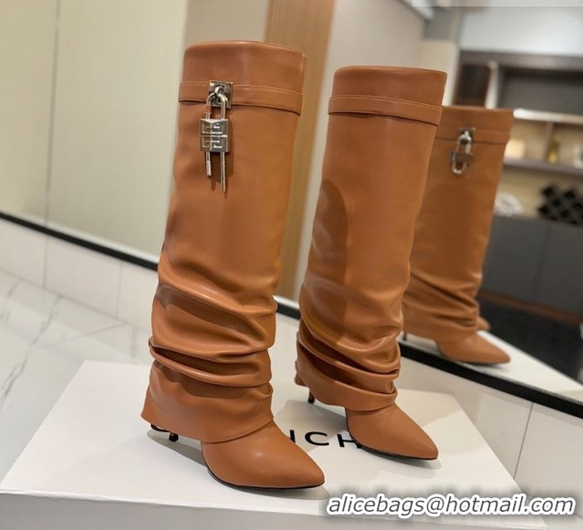 Best Product Givenchy Shark Lock Heel High Boots 10.5cm in Calfskin Leather Brown 1210027 2026