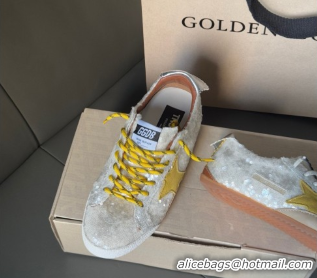 Unique Style Golden Goose Women's True-Star in white sequins with yellow star and silver leather heel tab 0902107