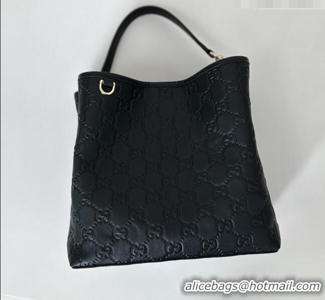 Good Quality Gucci GG Leather Emblem Medium Bucket Bag 815103 Black 2026