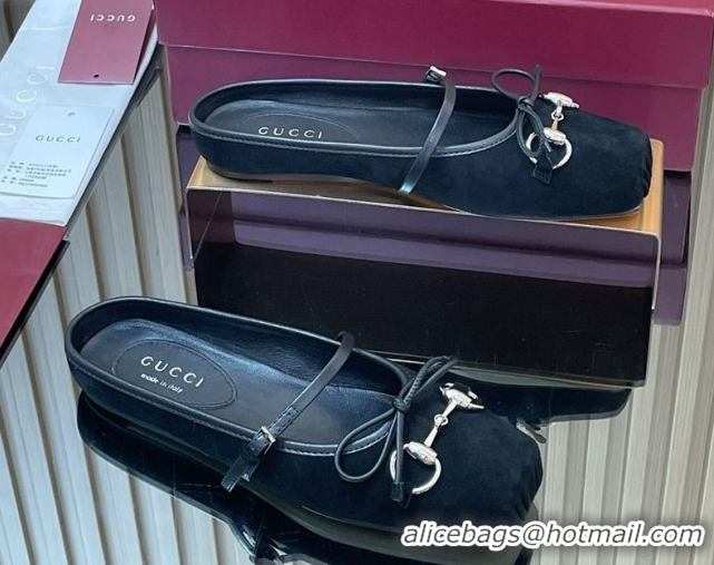 Good Quality Gucci Horsebit Flat Mules in Suede Black 1021066