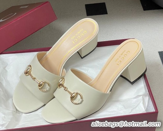 Good Looking Gucci Lambskin Leather Heel Slides Sandal 5.5cm with Horsebit 8548829 White 2026