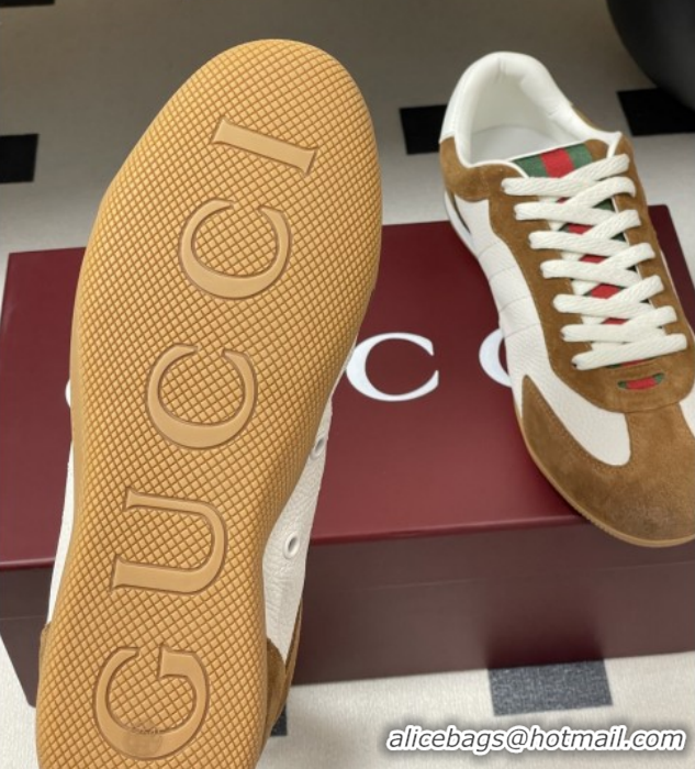 Your Position: Home > Shoes Plaza > Gucci Shoes > Shop Duplicate Gucci Shift Sneakers in Suede and Leather White/Brown 1218055 2026