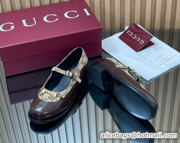 Buy Luxury Gucci Shiny Leather and GG Canvas Mary Janes Pumps 3.5cm with Horsebit 847769 Brown/Beige 2026