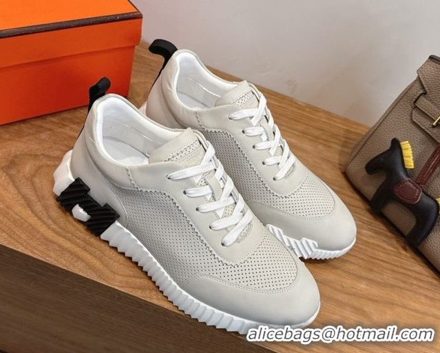 Top Design Hermes Bouncing Sneakers in Perforated Calfskin Leather Light Grey 2026 H261013
