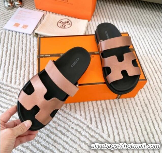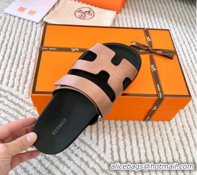Best Quality Hermes Chypre Flat Sandals in Satin Fabric Powder Pink 0123110