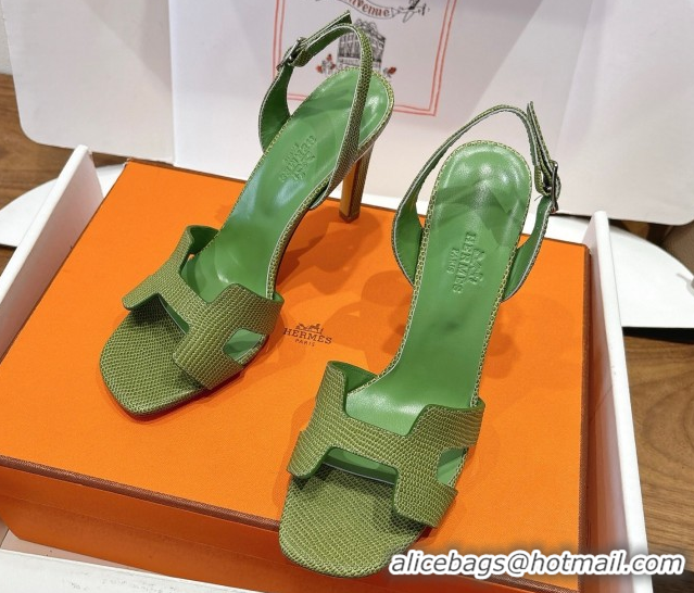 Good Quality Hermes Eremite Heel Sandals 10cm in Ostrich Embossed Leather Green H102308 1023139